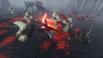 In the beginning of development, we set out to create a narrative driven game with slower and deliberate combat. After feedback we lessened our focus on narrative and significantly increased the pace and intensity of the combat, multiplying the number of enemies fought simultaneously and emphasizing the impact and game feel of each swing.